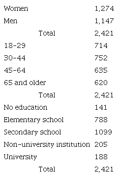 This research was carried out in compliance with CONICET’S guidelines for ethical behavior in the Social Sciences and Humanities (Resolution 2857/2006), the Declaration of Helsinki (Fortaleza 2013), the UNESCO Declaration on Bioethics and Human Rights, and the Human Rights laws and covenants currently in force in Argentina. Participation in the survey was voluntary. Participants' informed consent was obtained once the goals and expected benefits of the study were explained to them. The data collected are used for statistical purposes, with confidentiality and anonymity guaranteed to respondents so that they cannot be identified (Table 1).