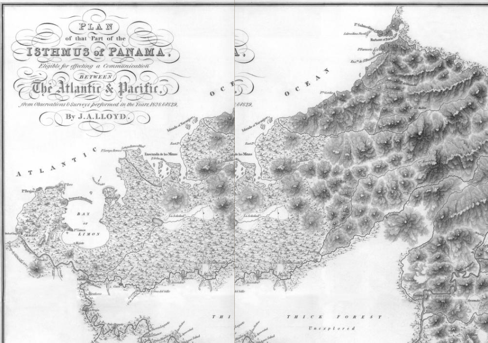 Durante el Congreso de Panamá en 1826, Bolívar estableció contactos con capitalistas británicos e insistió en el proyecto de conectar ambos océanos.61 En misiva de 31 de enero de 1826 dirigida al vicepresidente Francisco de Paula Santander, comunicaba la decisión de discutir las múltiples peticiones de colombianos y extranjeros para obtener el privilegio exclusivo de conectar el Atlántico y el Pacífico.62 En 1828, habiéndose ya proclamado presidente permanente, Bolívar contrató al ingeniero británico John Lloyd para explorar el istmo de Panamá y determinar la mejor forma de unir ambos océanos por medio de una carretera o un canal. El trabajo del ingeniero comenzó en Panamá en 1828, dando como único resultado la publicación del reporte de la investigación en la Royal Society de Londres en 1830 (figura 2).