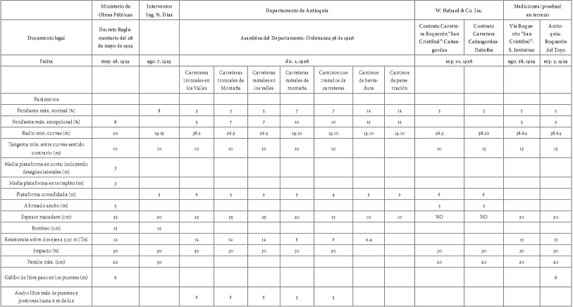 Las recomendaciones de la Junta Técnica fueron acogidas inmediatamente por la Asamblea Departamental a través de la Ordenanza 58 de 1926. Es decir, antes de que el Gobierno nacional produjera sus propios estándares, Antioquia ya tenía su propia reglamentación. Germán Uribe Hoyos, miembro de la Comisión Nacional de Transporte, declaraba en agosto de 1929 que “no existe plan alguno de especificaciones concretas para las carreteras nacionales” por lo que no veía motivo para retener el recibo de las carreteras de Antioquia y su correspondiente pago.37
