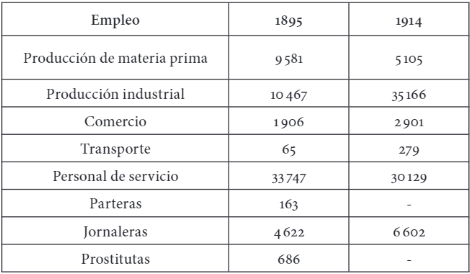 Si bien en los datos arrojados por el censo puede verse una proporción similar entre los infanticidios y los hurtos cometidos por mujeres, la sistematización realizada para la Provincia de Buenos Aires indica una cantidad mayor de los segundos. La persecución de este tipo de delito no se limitó únicamente a delincuencia femenina, pues con la implementación del capitalismo en el continente los robos fueron perseguidos más sistemáticamente. Sin embargo, como indica el censo, aquellos cometidos por varones fueron más perseguidos que los de las mujeres. Al respecto, Daniel Palma Alvarado ha señalado que el régimen capitalista trastocó las nociones de criminalidad y originó una penalidad que sancionó sobre todo los delitos contra la propiedad en el marco de la desigualdad estructural propia del capitalismo, generando un problema insoluble.17 En la Provincia de Buenos Aires, el desarrollo del capitalismo impactó notablemente el mundo laboral de las mujeres (ver tabla 2). La cantidad de empleos en la producción industrial (costureras, horneras y modistas) aumentó significativamente, así como el de jornaleras y comerciantes, en detrimento de los empleos destinados a la producción de materias primas (agricultoras y pastoras) y al servicio doméstico (mucamas, cocineras, lavanderas y planchadoras).