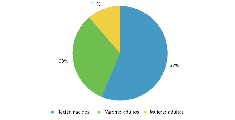 Los números arrojados por la sistematización realizada nos dan algunos indicios para pensar esa reconfiguración de la violencia durante el proceso de consolidación del Estado en clave de género. Puntualmente, cuando analizamos los asesinatos cometidos por mujeres, observamos un patrón diferente a los que fueron realizados por varones. Para comprender esta diferencia, es clave observar a la víctima y no al victimario. Así se descubre que en la mayoría de los casos en los que el asesinato fue cometido por mujeres, las víctimas eran los bebés que acababan de parir, es decir, casos que recaían en la figura del infanticidio (119 casos de infanticidio sobre un total de 190 asesinatos cometidos por mujeres). Si tomamos el homicidio y el infanticidio en un sentido amplio, entendiendo a ambos como un tipo de asesinato, observamos que este hecho era comparable al hurto. Sin embargo, y a diferencia de los varones, el infanticidio señala una víctima en particular —a un recién nacido de hasta tres días de vida— y una sola criminal posible —la madre— (ver figura 3).