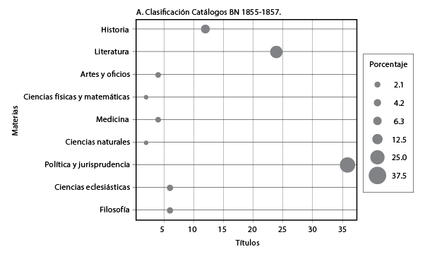 Por otro lado, antes de caracterizar la donación como la “biblioteca particular” de Ancízar, como un “tesoro historiográfico” o como libros “de carácter científico y literario”, es necesario analizar su composición. Estas etiquetas parten de hechos conocidos de la vida del donante (liberal, humanista, librepensador, anticlerical, masón, etc.) y no de una mirada comprensiva sobre el conjunto. A continuación, nos adentramos en las listas e inventarios de la transacción de libros y presentamos la constelación de títulos, autores y materias que articula.