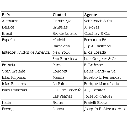Dada su naturaleza extra americana, esta segunda agrupación dio otra complejidad a la geografía del negocio. Llama así la atención que Pérez manifestara tener puntos de suscripción en Portugal e Italia, países con los cuales las relaciones comerciales no relucían, pero destaca más aún que se expusieran puntos en los archipiélagos balear y canario, así como en Manila, un hecho que, más allá de su veracidad o de la fluidez de esta posible relación, enfatizaba el deseo de abarcar toda la comunidad hispanohablante.