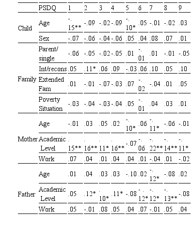 Correlations of PSDQ and its sub-dimensions with other variables (e.g., child age, child sex, family structure) were also analyzed (Table 5).