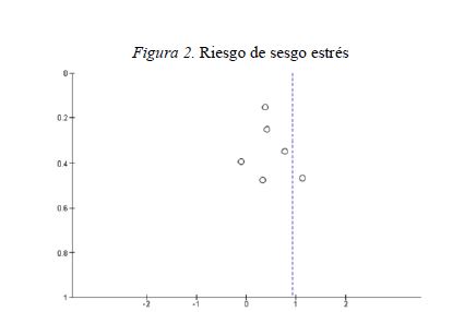 El riesgo de sesgo (Figuras 2 y 3) según la herramienta Cochrane de evaluación del riesgo de sesgo de las colaboraciones no fue alto en lo que respecta a los dominios relacionados con el sesgo de selección.Figura 2. Riesgo de sesgo estrés