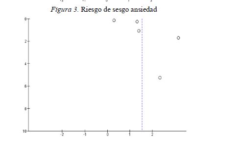 Se excluyeron un total de cuatro artículos por no mostrar resultados. Concretamente, los trabajos realizados por Estrada, García-Vega, y López-Espinosa (2016) y por Guerra y Barrera (2017) que, en este caso, sólo muestran resultados gráficos, así como el estudio realizado por Sánchez y Téllez (2016) por no mostrar en sus resultados las Medias (M) o, el realizado por Wood, Cano-Vindel, y Salguero (2015), que además de lo anterior, tampoco se muestran las Desviaciones Típicas (DT). En este sentido, el metaanálisis se realizó para las variables estrés y ansiedad, quedando incluidos en el mismo un total de siete artículos.