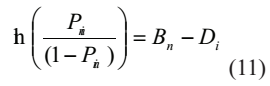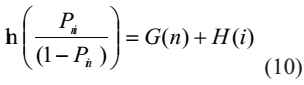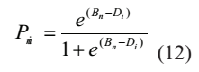 Definindo a proficiência do sujeito como sendo Bn = G(n) e a dificuldade do item como sendo Di = −H (i) (de modo que uma dificuldade maior diminua a probabilidade de acerto), podemos reescrever a equação acima como: