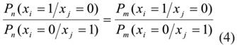 Considerando a probabilidade de um sujeito acertar o item i e errar o item j Pn(xi =1 x j = 0), temos que o valor dessa probabilidade é igual ao produto de duas probabilidades: a probabilidade de ele acertar o item i e a probabilidade de errar o item j.