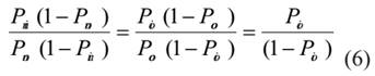 Como a equação 5 deve ser verdadeira para quaisquer sujeitos e quaisquer itens, podemos escolher, então, um sujeito referência, m = o, e um item referência, j = o, de forma que a probabilidade de o sujeito de referência acertar o item de referência seja igual a 50%, Po = 0,5. A probabilidade de erro será: (1− Po ) = 0,5.