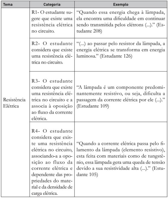 Outro conceito que podemos encontrar nas respostas para a mesma questão, considerado como outro tema da TCE, é a resistência elétrica. O quadro 2 apresenta os níveis de complexidade nesse caso.