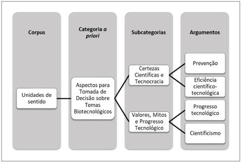 Tendo em vista esses princípios metodológicos e os objetivos da pesquisa, estabeleceram-se a priori algumas categorias de análise, das quais - neste trabalho - se analisa a categoria “Aspectos para Tomada de Decisão sobre Temas Biotecnológicos”.