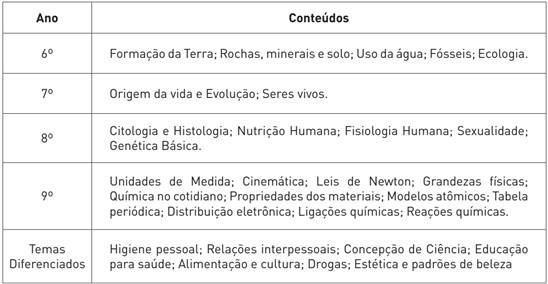 Ao longo dos três anos do projeto, os bolsistas ID tiveram a oportunidade de trabalhar com todos os anos do ensino fundamental (6º ao 9º) abordando diversos conteúdos como apresentado no Quadro 1.