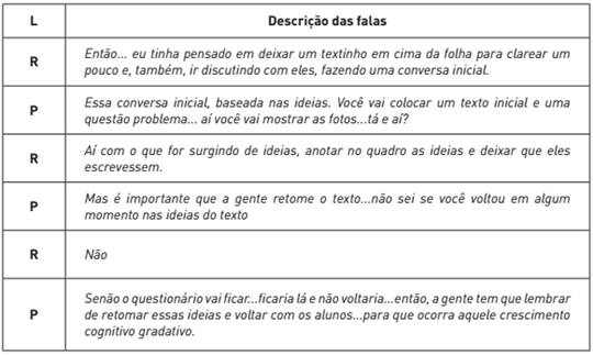 Observa-se certa dificuldade de o licenciando propor o levantamento das ideias dos alunos, bem como, considerar a importância de tratar em sala de aula as principais concepções manifestadas pelos estudantes. Embora o licenciando proponha o levantamento das ideias, a sua proposta apresenta-se genérica, não nos permitindo compreender com clareza o que seria promovido e como as ideias seriam utilizadas, ou seja, ele apenas cita a utilização da estratégia. A pesquisadora, inclusive, atenta ao licenciando quanto à importância de voltar às ideias que foram manifestadas por meio do instrumento nas próximas aulas. Segundo Mellado (1998), professores em formação inicial fazem planejamentos considerando as ideias prévias dos alunos, mas, muitas vezes, sua compreensão epistemológica se restringe a citar a utilização dessas, acabando por esquecê-las ou ignorá-las, sem realizar um tratamento avaliativo.