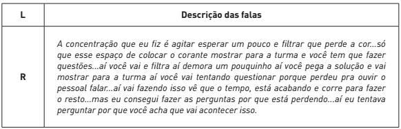Um dos momentos mais conflitantes do PRO para o licenciando R está no desenvolvimento da atividade experimental na terceira aula. O licenciando expressa as dificuldades encontradas para desenvolver e mediar o experimento em sala de aula, conforme mostra excerto da transcrição do encontro reflexivo no Quadro 17.