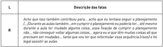 Neste sentido, embora o licenciando R possa não ter conseguido desenvolver em sala de aula, satisfatoriamente alguns aspectos de sua sequência planejada, ele pode ter direcionado seu olhar para outras situações relacionadas à prática docente, como, levantar a ideias dos estudantes, propor a questão problema, realizar o experimento de maneira investigativa, questionar os estudantes, motivá-los e sensibilizá-los durante as aulas, controlar a disciplina, dominar o conteúdo, falar corretamente, ou seja, uma gama de ações, novas e repletas de incertezas e geradoras de ansiedade e medo, em um ambiente ainda pouco conhecido e dominado por ele.