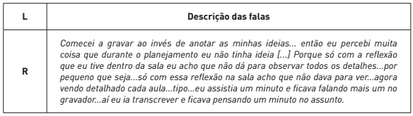 Todos os encontros individuais entre a pesquisadora e o licenciando R, bem como os encontros em grupo, foram gravados em áudio e vídeo e, posteriormente, transcritos para a análise. Neste trabalho foram utilizadas apenas as gravações dos encontros individuais entre pesquisadora e licenciando R.