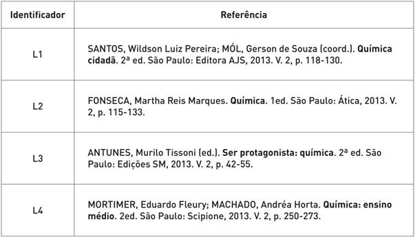 BRASIL. Ministério da Educação, Secretaria de Educação Básica. Guia de livros didáticos PNLD 2015: química: ensino médio. MEC: Brasília, 2014.