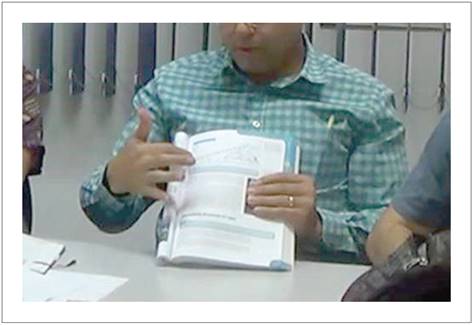 Os dados que subsidiam as nossas inferências com relação às percepções dos professores-estudantes foram obtidos por meio da gravação em áudio e vídeo das considerações dos quatro grupos, bem como dos registros que constam do relatório entregue por eles. Neste sentido, para nossa investigação utilizamos signos escritos, falados e gesticulados produzidos pelos professores-estudantes. Do ponto de vista metodológico, trata-se de uma pesquisa qualitativa e de análise interpretativa. Os registros escritos e as transcrições das considerações dos professores-estudantes são referidos por meio de identificadores que consideram cada livro analisado (L1, L2, L3 e L4), bem como o integrante de cada grupo que é identificado por E1, E2 e E3. Assim, L1E1 se refere a considerações do professor-estudante E1 para o livro L1; L2E3 se refere a considerações do professor-estudante E3 para o livro L2; L3E1 corresponde a considerações do professor-estudante E1 que analisou o livro L3 e, assim, sucessivamente.