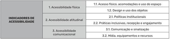 Por isso, para se pensar nessa ação de inclusão por meio da educação museal, podemos nos aproximar dos conceitos dos diferentes tipos de acessibilidade em museus de ciências, que surgem como uma necessidade de avaliar os espaços museais. Nesse sentido, podemos entender o conceito de acessibilidade em museus a partir da junção de três dimensões: a acessibilidade física, a acessibilidade comunicacional e a acessibilidade atitudinal (Norberto Rocha et al., 2020).