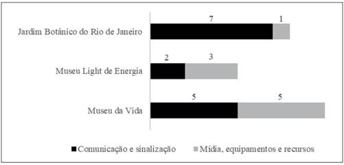 Dessa forma, é importante que os museus de ciências elaborem exposições e ambientes mais acessíveis, que permitam a autonomia do visitante surdo quanto ao entendimento e aproveitamento integral dos museus. Os participantes buscaram elaborar críticas, principalmente quanto à criação de mais formas de transmissão da narrativa museal, sem o uso privilegiado da linguagem textual em língua portuguesa, e se utilizando de relevos, texturas, imagens, recursos tecnológicos como televisores e tablets, entre outros, para divulgar suas mensagens. Além disso, apontaram a necessidade primeira da presença de intérpretes fornecidos pelos próprios espaços museais, inclusive pelo fator econômico ligado à contratatação individual desses profissionais.