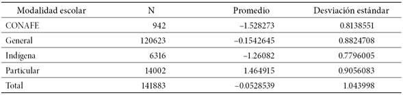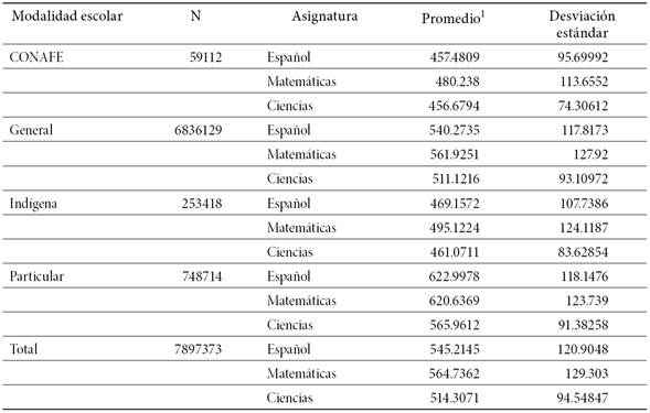 La estratificación de los resultados por modalidades escolares es uno de los rasgos más sobresalientes del sistema educativo mexicano desde el enfoque de la desigualdad. Significa que es posible predecir que un alumno obtendrá resultados tendencialmente bajos por el simple hecho de asistir a los cursos comunitarios (CONAFE) o a una primaria indígena. 15 Se trata también de un fenómeno de acentuada inequidad, por la tendencia a sesgar la distribución de las oportunidades educativas de los jóvenes, según se ha argumentado en el apartado anterior.
