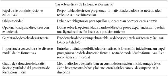 En el Cuadro 3 se sintetizan las principales características de la formación inicial desde la percepción de los directores aragoneses.