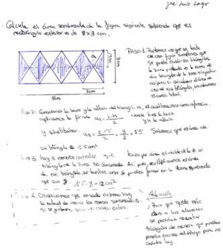 Con relación a la cuarta tarea, lo primero que hay que resaltar es que dos terceras partes del grupo no tienen un nivel de competencia matemática que les permita resolver un problema dirigido a alumnos de primaria que había propuesto un compañero suyo. En concreto no pudieron resolver el problema 3 (calcular el área de uno de los seis triángulos que forman parte de un hexágono inscrito en una circunferencia). Esta dificultad se consideró una evidencia de falta de competencia matemática de estos futuros maestros de primaria, que corroboró lo ya observado en la tarea 1.