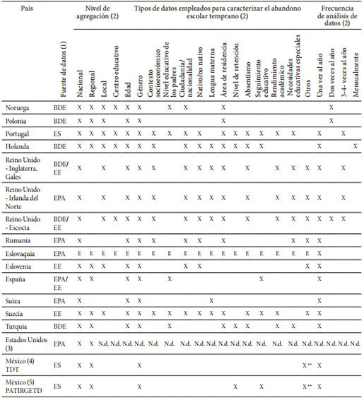 Si lanzamos una mirada a países con tasas de abandono escolar superiores al 10 por ciento (Italia, Portugal y Noruega), éstos tienen datos agregados en los cuatro niveles, y Reino Unido, en tres de ellos. En Malta, México y España los datos se encuentran disponibles en dos niveles de agregación, y en Rumania e Islandia, en uno de los cuatro niveles posibles.