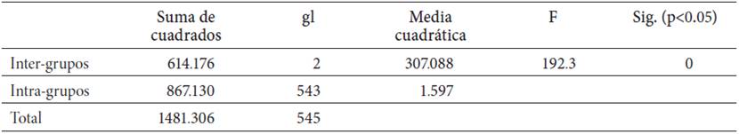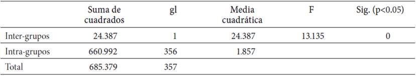 La Tabla 3 resume la estimación de la varianza de las calificaciones obtenidas en la actividad de proyecto por el grupo experimental y el grupo de control.
