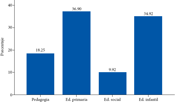 Como se puede apreciar en la Gráfica 1, quienes contestaron la encuesta eran, principalmente, alumnos/as que cursaban las carreras de Educación primaria y Educación infantil; no obstante, hemos de señalar que el número de alumnos/as en cada titulación es proporcional al número total de la población. El lugar de realización de las prácticas fue, mayoritariamente, centros educativos de carácter público.