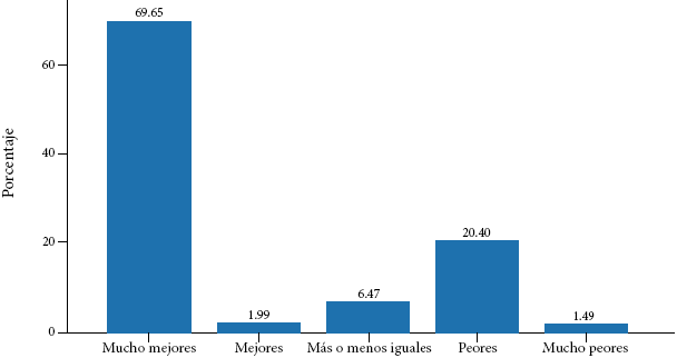 En general, el alumnado hace una valoración muy positiva de las practicas, como se aprecia en el análisis descriptivo global, pero a pesar de ello, cuando se les pregunta directamente si estas prácticas son mejores o peores que las realizadas en otras ocasiones, su valoración es negativa, es decir, ellos consideran que han cursado otras prácticas mejores que estas.