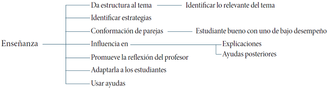 Los profesores expresaron que la estrategia les permitió dar estructura al tema a impartir e identificar los conceptos relevantes; así mismo, les ayudó a identificar formas de abordar problemas y distintos apoyos, así como a adaptar su enseñanza a las necesidades del estudiante. La estrategia también tuvo influencia en su forma de dar las explicaciones y en la conformación de equipos de trabajo, por ejemplo, para agrupar estudiantes de buen desempeño con estudiantes de bajo desempeño (Fig. 12).