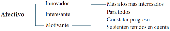 Los profesores expresaron que la estrategia puede tener efectos en el plano afectivo, tanto para los estudiantes como para el profesor (Fig. 8). Percibieron que sus estudiantes consideraron la estrategia y el esquema interesantes e innovadores; y opinaron que el esquema los motivó, porque sintieron que el profesor los estaba tomando en cuenta y porque la estrategia les permitía constatar su progreso. Algunos profesores indicaron que el grado de motivación fue variable, de acuerdo con el tipo de estudiante: por ejemplo, los más interesados, los que tenían más dificultades y los más reflexivos.