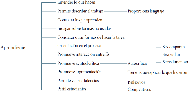 Los profesores resaltaron dos características positivas de la estrategia: los estudiantes proporcionan información sobre su actuación que no está sesgada por la nota, y por lo tanto esto le permite al profesor interpretar el trabajo de cada estudiante; sin embargo, también señalan que el buen uso de la herramienta por parte de los estudiantes les puede tomar algún tiempo (Fig. 6). En ese mismo sentido, un profesor opinó que, en algunas circunstancias, la estrategia puede resultar contraproducente al mostrar a los estudiantes la “receta” para la tarea.