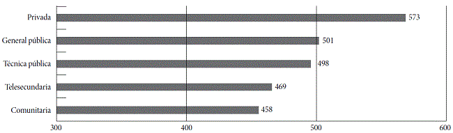 Las escuelas comunitarias y telesecundarias registran el mayor porcentaje de alumnos ubicados en el nivel I, pues 4 de cada 10 tienen un logro insuficiente en lenguaje y comunicación; las secundarias técnicas y las generales públicas (47.3 y 47.9 por ciento, respectivamente) se ubican en el nivel II. Con respecto a la secundaria privada, 32.8 por ciento de los estudiantes se ubica en el nivel III.