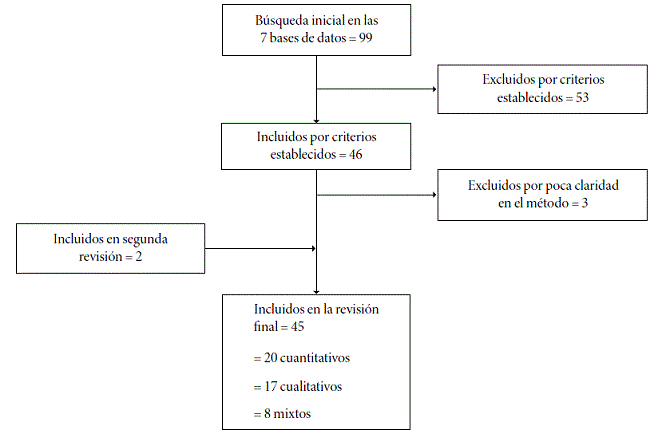 Posteriormente se realizó una revisión focalizada en los resultados, conclusiones y discusiones de las investigaciones, a través de reuniones entre los revisores, donde emergieron los criterios que permitieron agrupar y analizar los estudios empíricos.