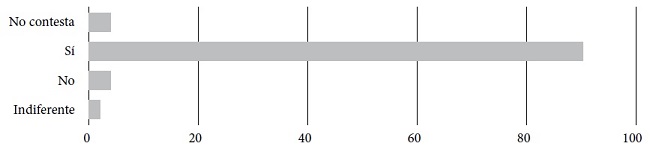 A la pregunta ¿es España una nación?, de los 148 encuestados, 89.9 por ciento respondió afirmativamente, sólo 6 contestaron negativamente y 3 se mostraron indiferentes (Gráfica 3). A la pregunta ¿te sientes orgulloso/a de ser español/a?, las respuestas mantienen una tónica similar: 133 encuestados (89.9 por ciento) contestó afirmativamente, 8 negativamente y 19 se mostraron indiferentes, es decir, 5 y 19 por ciento, respectivamente.