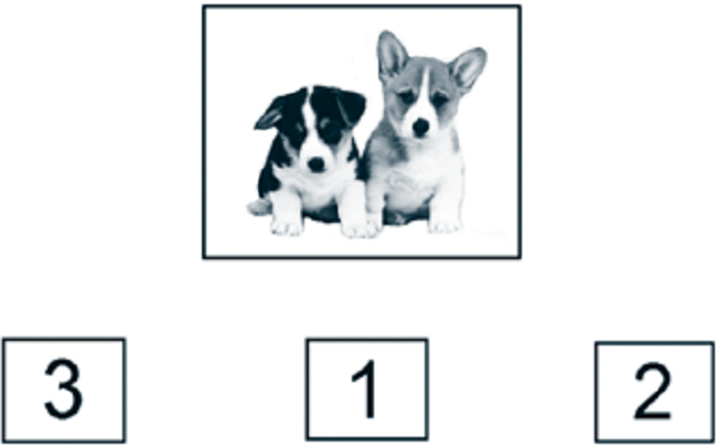 Observa, aquí hay algunos perros [el examinador señala los perros]. Debajo de los perros hay unos números [el examinador señala los números]. Encierra el número que indica cuántos perros hay.