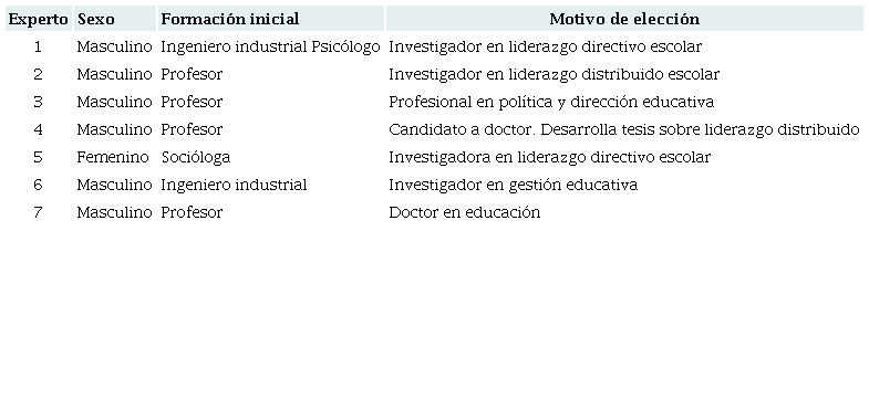 Con relación al criterio del perfil de experto, se privilegió el hecho de que fueran académicos y/o profesionales de la educación que tuviesen experiencia y trayectoria demostrable en dirección escolar o en investigación sobre liderazgo escolar. Así, se confeccionó un listado con sus nombres y se les envió el instrumento y un protocolo de solicitud de colaboración para la validación del cuestionario, indicando los objetivos y procedimientos, para que valoraran el grado de pertinencia y relevancia de cada uno de los ítems del cuestionario y sus respectivas escalas. Se les pedía, también, que enviaran comentarios de forma y de fondo sobre el contenido. La lista final quedó conformada por los siguientes atributos de expertos.