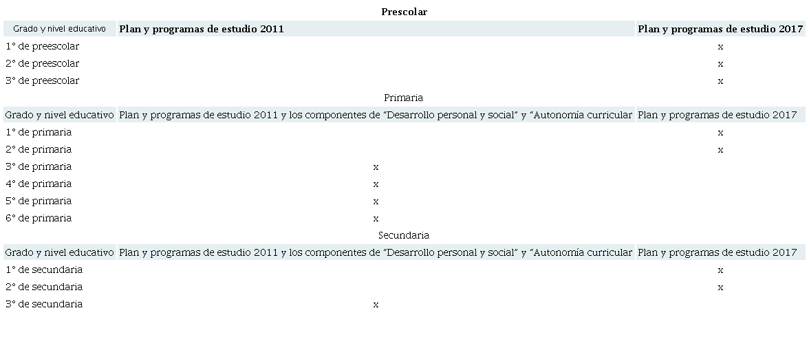 a) En primero, segundo y tercero de preescolar; primero y segundo de primaria; y primero y segundo de secundaria se aplicará el plan de estudios 2017.