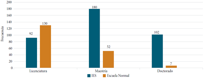 Es relevante destacar que el mayor porcentaje de participantes de la muestra obtuvo el posgrado después del año 2009, cuando ya fue posible su participación en cuerpos académicos y la obtención del perfil deseable. Es posible suponer que hubo una disposición tanto de carácter individual como institucional para orientar la obtención del posgrado en los académicos normalistas, con el propósito de ajustarse a los requerimientos de las políticas educativas de ese periodo y, sobre todo, de participar en los programas que representaban una fuente de financiamiento para las instituciones.