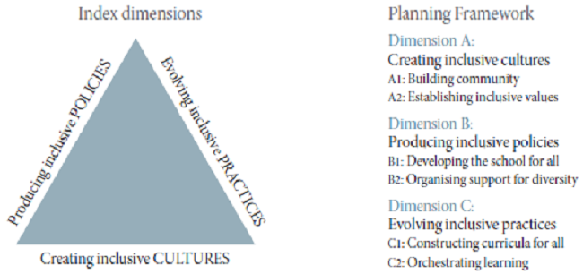 Es importante comprender que la visión de la inclusión presentada en el Index for inclusion es amplia, ya que va más allá de muchas de las formulaciones que se han utilizado con anterioridad. Se preocupa por minimizar las barreras de aprendizaje y participación, sea quien sea y donde sea que las experimente en el proceso de construcción de culturas, prácticas y políticas inclusivas en la escuela. Lo anterior implica un énfasis en la movilización de recursos infrautilizados por el personal, el estudiantado, el equipo de gestión, las familias y los demás miembros de la comunidad educativa. En este contexto, la diversidad es vista como un recurso valioso para apoyar el desarrollo de la enseñanza y el aprendizaje (Bartolomé, 2017).