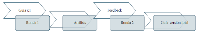 El proceso de la técnica Delphi comienza con un primer conjunto de opiniones de los expertos (ronda 1) y continúa con el análisis de un informe de investigación en el que se incluye información sobre cada indicador con sus propuestas de cambio y las aclaraciones sobre las diferentes preguntas, además de una sección específica que permite comentarios adicionales. Finalmente, se solicita la revisión de la nueva versión de la Guía por parte del equipo experto y del informe y los comentarios correspondientes a dicha versión (Fig. 6).