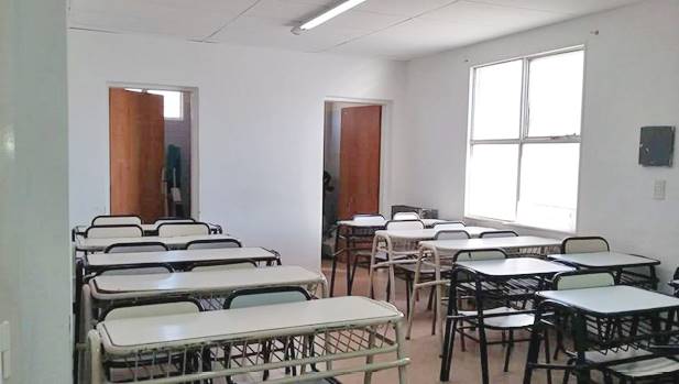 No tenemos edificio, no tenemos nada. Ahora es un tema, porque no sé qué vamos a hacer el año que viene. No sé dónde va a funcionar el quinto año. No hay aulas para los quintos y eso que tenemos turno mañana y tarde. Si son cuatro aulas. Vos viste lo que son las aulas de chiquitas. Si en donde están las aulas de primero y segundo ese era el salón de plástica de la primaria y las aulas de tercero y cuarto era un pasillo. Lo que hicieron fue cerrar con eso, fibrofácil. Quedaron rechicas las aulas. Son muy incómodas. Sabes que vos estás dando clases y están los chicos en educación física y escuchas los gritos, los pelotazos. Es terrible dar clases ahí (docente escuela secundaria 1, 2014).
