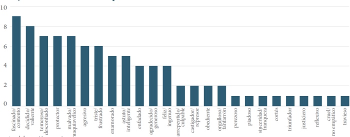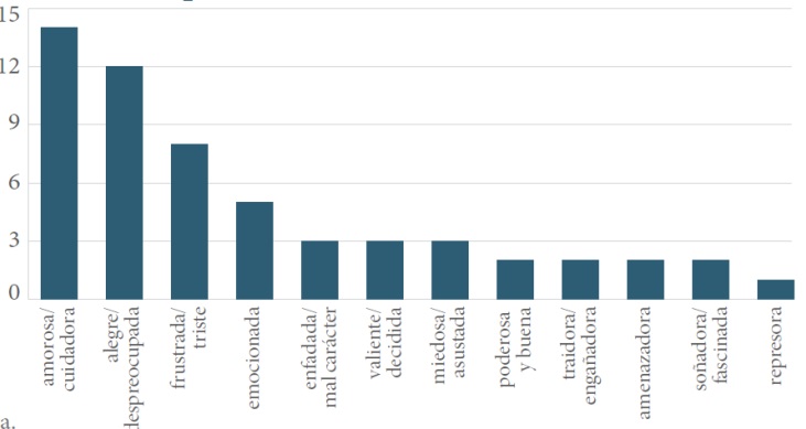 Con relación a los personajes femeninos, en los cuentos clásicos representan un perfil más desfavorecido e indican rasgos más infantiles, vulnerables y pasivos, como la ingenuidad, la frustración o el temor (Gráfica 2).