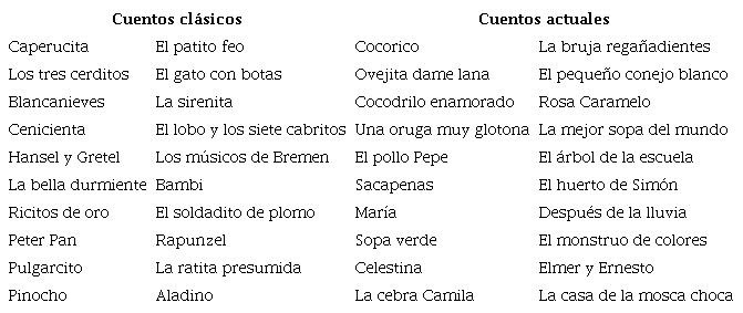 De los cuentos actuales identificados por los docentes se seleccionaron 20, en atención a la frecuencia de aparición y procurando una proporcionalidad con la primera selección de cuentos clásicos. La muestra final se presenta en el Cuadro 1.