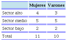 En esta misma tendencia, tres años después, es decir, en el año 2019 y principios del 2020, se volvió a contactar, pero esta vez sólo a los y las jóvenes de este mismo grupo de entrevistados (21 casos de 30) que habían iniciado una carrera universitaria para dar continuidad al seguimiento en el tiempo y profundizar en el estudio de transiciones de la secundaria a la universidad. Es decir que, como último eslabón de la investigación se realizaron 21 entrevistas en profundidad a jóvenes de una muestra intencional. Se trató de una muestra compuesta por 11 mujeres y 10 hombres (Tabla 1) que se confeccionó a partir de los datos individuales relevados en campo, hecho que permitió la homologación entre los datos cuantitativos y cualitativos acopiados y que será de insumo para este trabajo. Resta decir que a lo largo de todo el proceso de investigación se trabajó a partir de la combinatoria de herramientas cuantitativas y cualitativas, mientras que el proceso analítico se orientó con base en la triangulación de datos y el análisis reflexivo de la información.