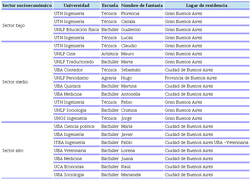 El seguimiento y análisis de 21 entrevistas en profundidad, aleatorio y no representativo, reveló que los recorridos en la universidad se igualaban en el acceso, pero las motivaciones y acompañamientos escolares y familiares generaban diferencias en las experiencias transitadas. De hecho, para algunos jóvenes el pasaje de la escuela a la universidad fue amortiguado por los recursos monetarios y simbólicos que sostenían estos trayectos, mientras que para otros el ingreso a la universidad tuvo menos certezas.
