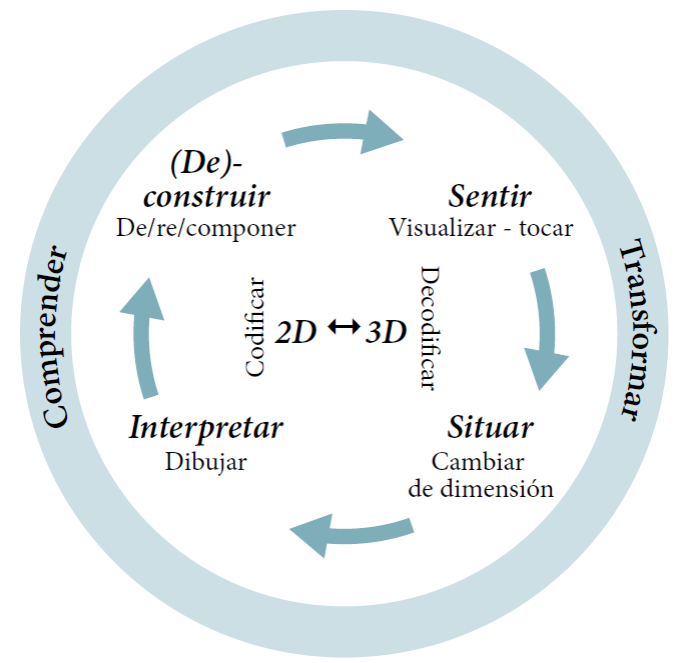 ¿cómo las tareas de des/re/composición y cambios de dimensión (2D ↔ 3D) con material manipulable de la trayectoria de aprendizaje propuesta inciden en los procesos de codificación y decodificación?