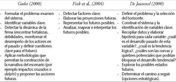 En el cuadro 1 se describen algunos de los procesos de construcción de escenarios.